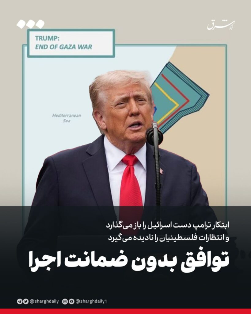 🔹طرح ترامپ برای غزه با استقبال محتاطانه برخی کشورها و شک و تردیدهای جدی در منطقه روبه‌رو شد. این طرح آزادی گروگان‌ها، تشکیل هیأت تکنوکرات فلسطینی و حضور یک نیروی ثبات مشترک عربی–غربی را پیش‌بینی می‌کند، اما به اسرائیل اجازه می‌دهد در صورت نقض توافق، عملیات نظامی را از سر بگیرد. به باور تحلیلگران، همین بند آخر عملاً نوعی «پوشش بین‌المللی» برای تداوم حضور ارتش اسرائیل در غزه ایجاد می‌کند.