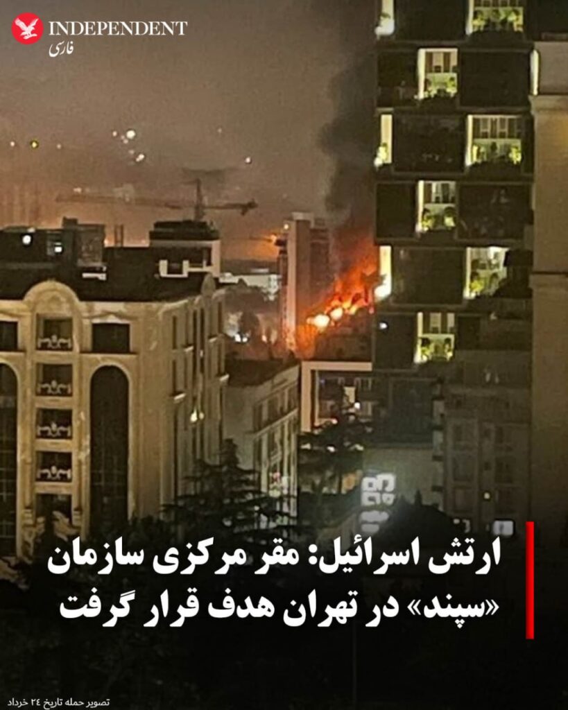 ارتش اسرائیل: مقر مرکزی سازمان «سپند» در تهران هدف قرار گرفت