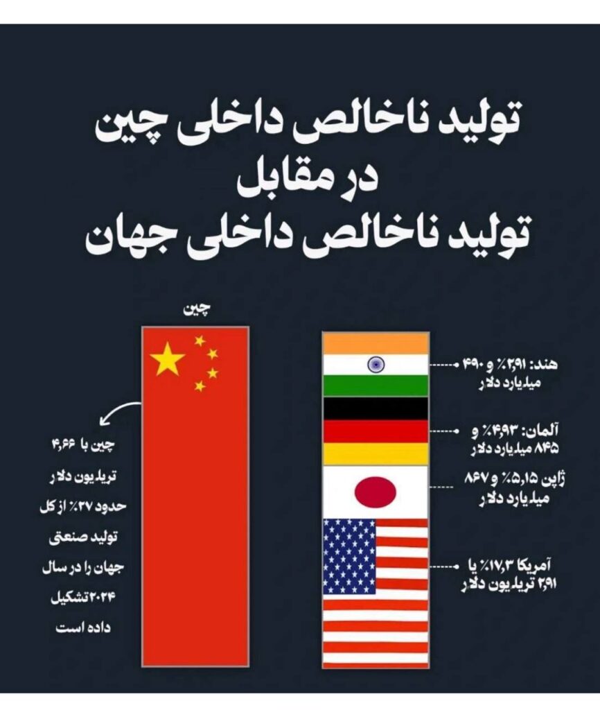▫️این آمار نشاندهنده نقش حیاتی چین به عنوان بزرگترین اقتصاد صنعتی و تولیدکننده کالا در جهان است.