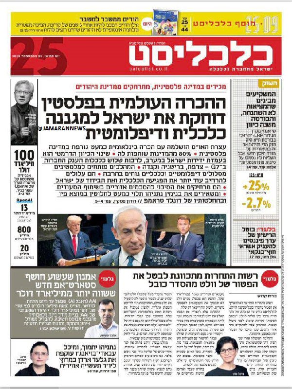 🔸روزنامه اسرائیلی کالكالیست نوشت: روند فزاینده بهرسمیتشناختن فلسطین توسط جامعه جهانی، “اسرائیل” را در برابر فشارهای اقتصادی و دیپلماتیک گسترده قرار داده است.