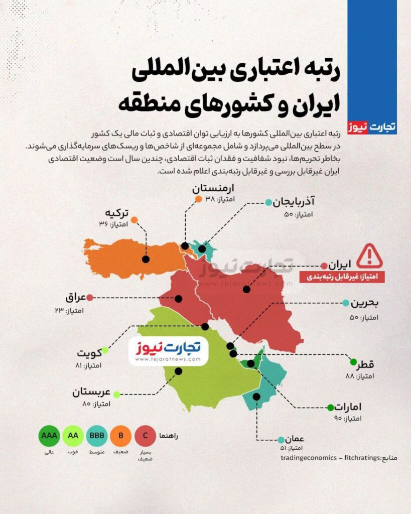 🔸رتبه اعتباری بینالمللی ایران و کشورهای منطقه