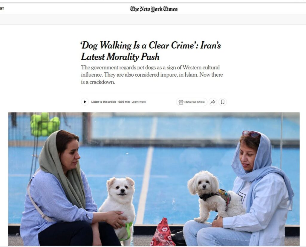 بازتاب خبر اعلام جرم علیه سگ‌گردانی در ایران در رسانه بین‌المللی نیویورک‌تایمز!