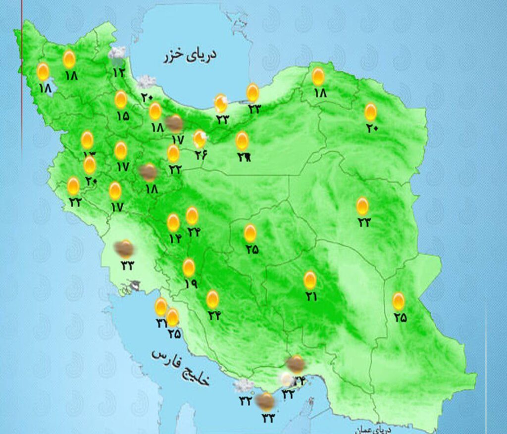 🔸امروز و فردا در برخی مناطق شمالشرق، سواحل دریای خزر و استانهای واقع در دامنههای جنوبی البرز افزایش ابر، رگبار و رعدوبرق و وزش باد شدید موقت پیشبینی میشود.