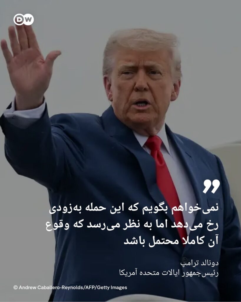 دونالد ترامپ، رئیس‌جمهور ایالات متحده آمریکا در روز پنجشنبه ۱۲ ژوئن حمله اسرائیل به تأسیسات هسته‌ای ایران را امری “نامحتمل” توصیف نکرد.