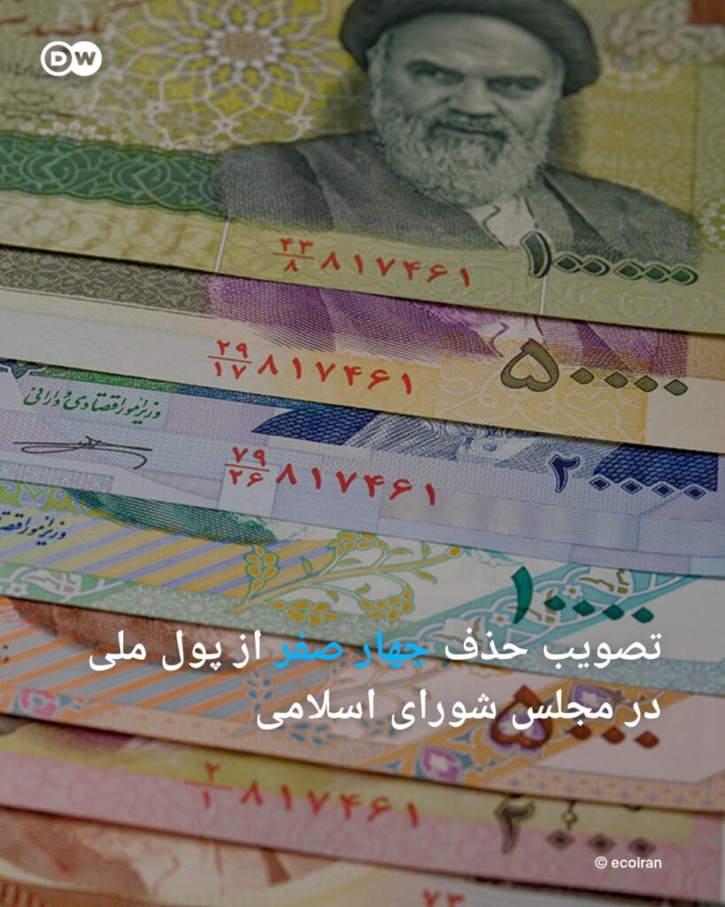 نمایندگان مجلس شورای اسلامی طرح حذف چهار صفر از پول ملی را تصویب کردند. به گزارش رسانههای داخلی ایران، نمانیدگان مجلس امروز در جلسه علنی خود با بررسی ایرادات شورای نگهبان در لایحه اصلاح قانون پولی و بانکی کشور، طرح حذف چهار صفر از پول ملی را تصویب کردند.
