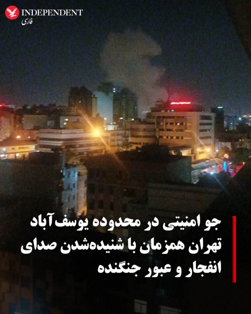 ♦️ ساکنان محدوده یوسف‌آباد تهران، بامداد جمعه از شنیده‌شدن صدای انفجار و عبور جنگنده خبر دادند. به گفته شاهدان عینی، حوالی ساعت یک بامداد، صدای مهیب انفجار و عبور یک جنگنده از آسمان منطقه شنیده شد و در پی آن، جو برخی کوچه‌ها و خیابان‌ها امنیتی توصیف شده است.