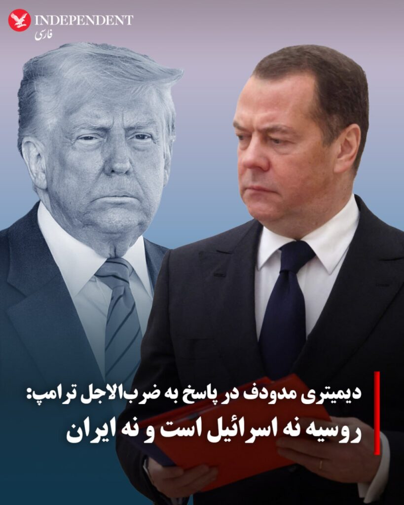 مدودف در پیامی نوشت: «ترامپ فراموش نکند که روسیه نه اسرائیل است و نه حتی ایران. هر اولتیماتوم جدید، نه فقط یک تهدید، بلکه گامی به سوی جنگ است؛ و این بار، نه جنگ با اوکراین، بلکه با کشور خودش.»