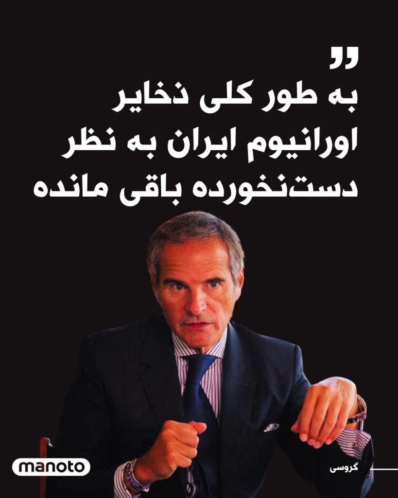 گروسی در مصاحبهای تایید کرد که این آژانس از زمان حملات اول اسرائیل به سایتهای غنیسازی ایران در ۱۳ ژوئن، هیچ اطلاعاتی درباره وضعیت یا مکان ذخایر اورانیوم غنیشده ایران دریافت نکرده است.