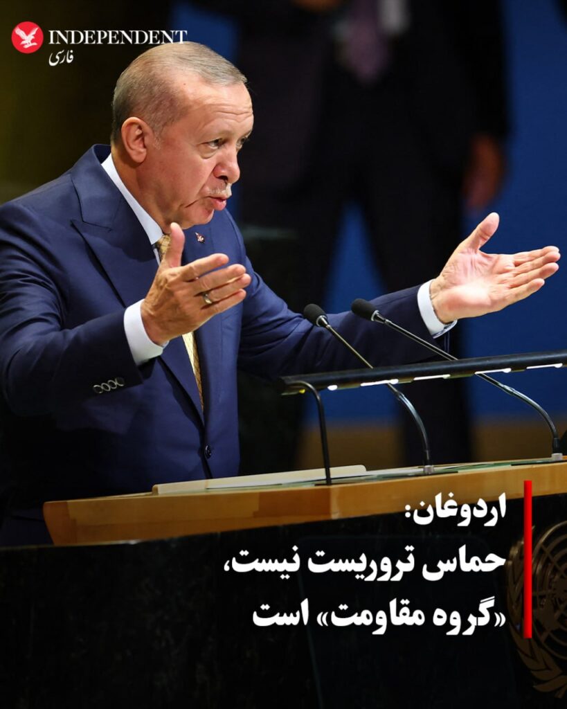 رجب طیب اردوغان، رئیسجمهوری ترکیه در گفتوگو با فاکس مدعی شد که حماس گروه تروریستی نیست و به گفته او گروه مقاومت است. این گروه که مسئول حمله هفتم اکتبر به اسرائیل و کشته شدن بیش از ۱۲۰۰ نفر و گروگان گرفته شدن بیش از ۲۵۰ نفر است در فهرست تروریستی کشورهایی مانند آمریکا قرار دارد.