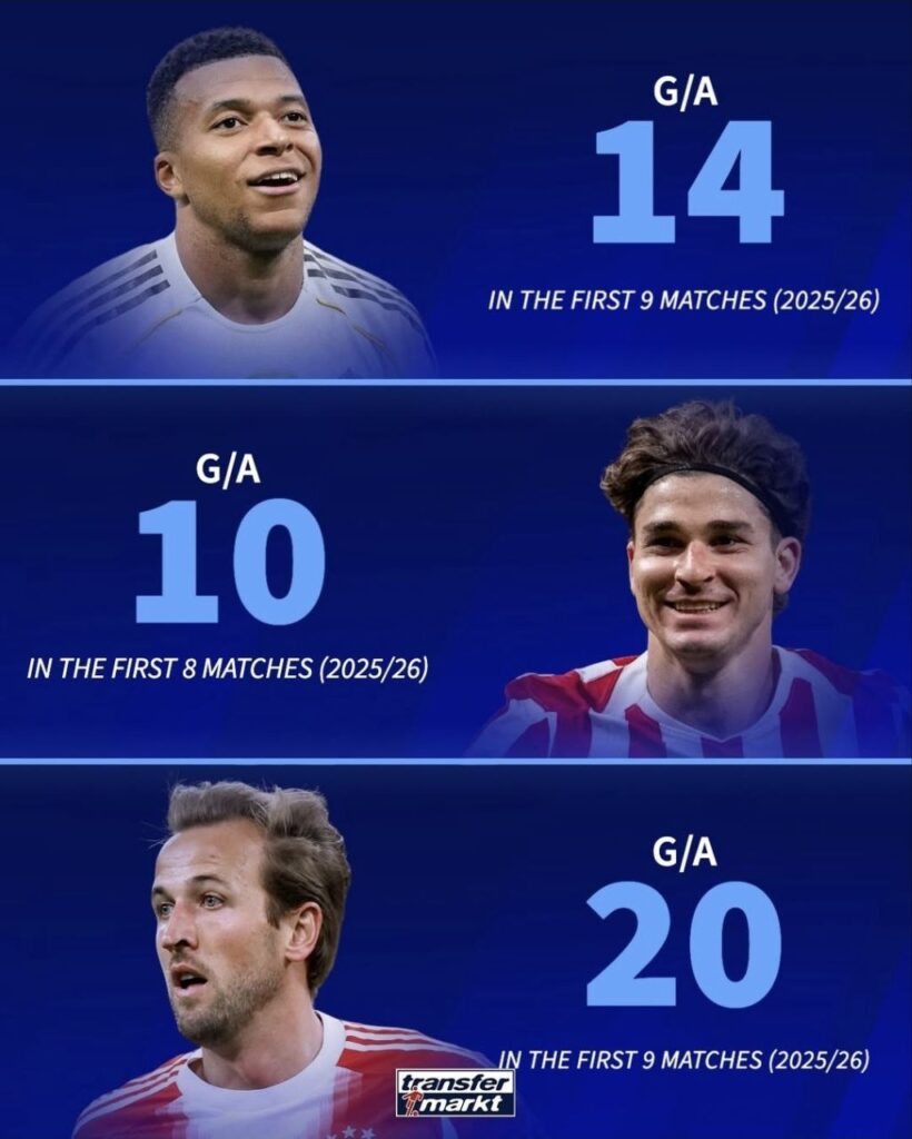 عملکرد سه مهاجم فوتبال اروپا از نظر ثبت گل و پاس گل در ۹ بازی ابتدایی فصل