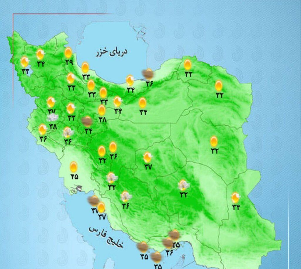 🔹امروز با فعالیت سامانه بارشی در شمال استانهای آذربایجان غربی، آذربایجان شرقی، اردبیل، گیلان، مازندران و ارتفاعات البرز مرکزی رگبار رعد و برق و وزش باد شدید موقت پیشبینی میشود.