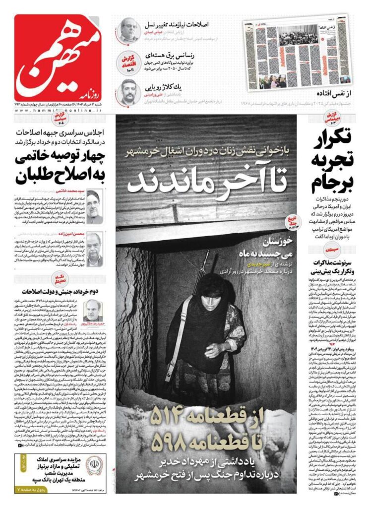 صفحه نخست روزنامه‌های شنبه ۳ خرداد ۱۴۰۴