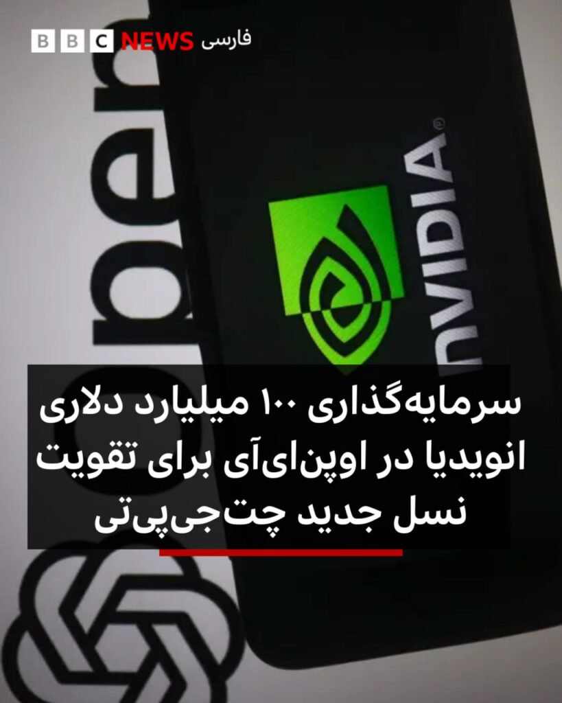 نویدیا، غول فناوری آمریکا، اعلام کرد تا سقف ۱۰۰ میلیارد دلار در اوپن‌ای‌آی، شرکت پشتیبان چت‌جی‌پی‌تی، سرمایه‌گذاری خواهد کرد.