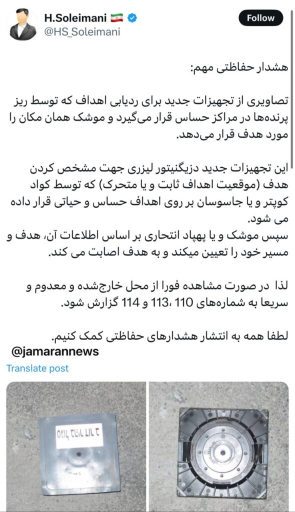 🔹تصاویری از تجهیزات جدید برای ردیابی اهداف که توسط ریز پرندهها در مراکز حساس قرار میگیرد و موشک همان مکان را مورد هدف قرار میدهد.