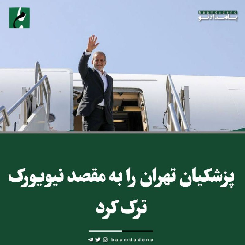 🔸«مسعود پزشکیان» صبح امروز سهشنبه یکم مهرماه ۱۴۰۴، به منظور شرکت و سخنرانی در هشتادمین نشست مجمع عمومی سازمان ملل متحد با بدرقه رسمی «محمدرضا عارف» معاون اول و «حجتالاسلام والمسلمین محسن قمی» معاون ارتباطات بینالملل دفتر مقام معظم رهبری، جمعی از وزرا و معاونان خود، عازم نیویورک شد.