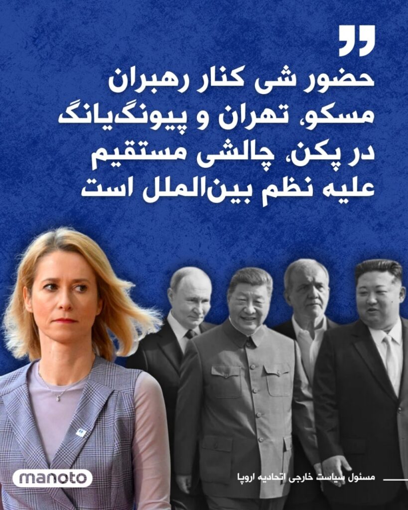 او تأکید کرد که جنگ اوکراین با حمایت چین از روسیه ادامه دارد و اروپا باید واقعیتهای این همپیمانیها را هماکنون مورد توجه قرار دهد. کالاس همچنین افزود: «چین و روسیه در تلاشاند تا تغییراتی در نظم جهانی ایجاد کنند که صد سال اخیر بیسابقه بوده است. یک نظم جهانی جدید در حال شکلگیری است و اروپا بدون ایفای نقش ژئوپولیتیک خود، نمیتواند آن را شکل دهد.»