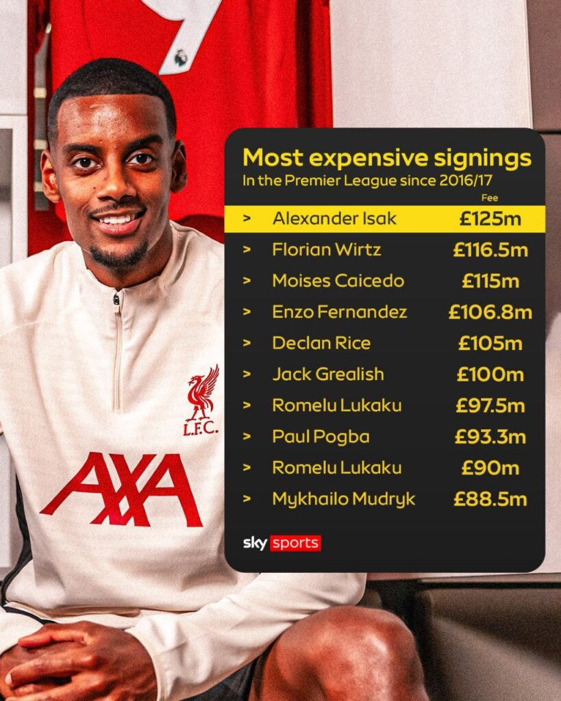📊 گرانترین خریدهای تاریخ لیگ برتر انگلیس از فصل ۱۷-۲۰۱۶ تا امروز