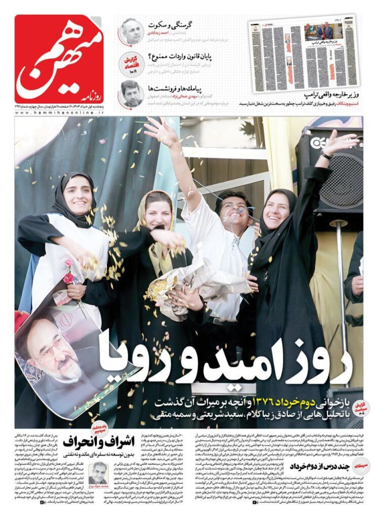 🔴تصویر سید محمد خاتمی روی جلد روزنامه هم‌میهن قرار گرفت