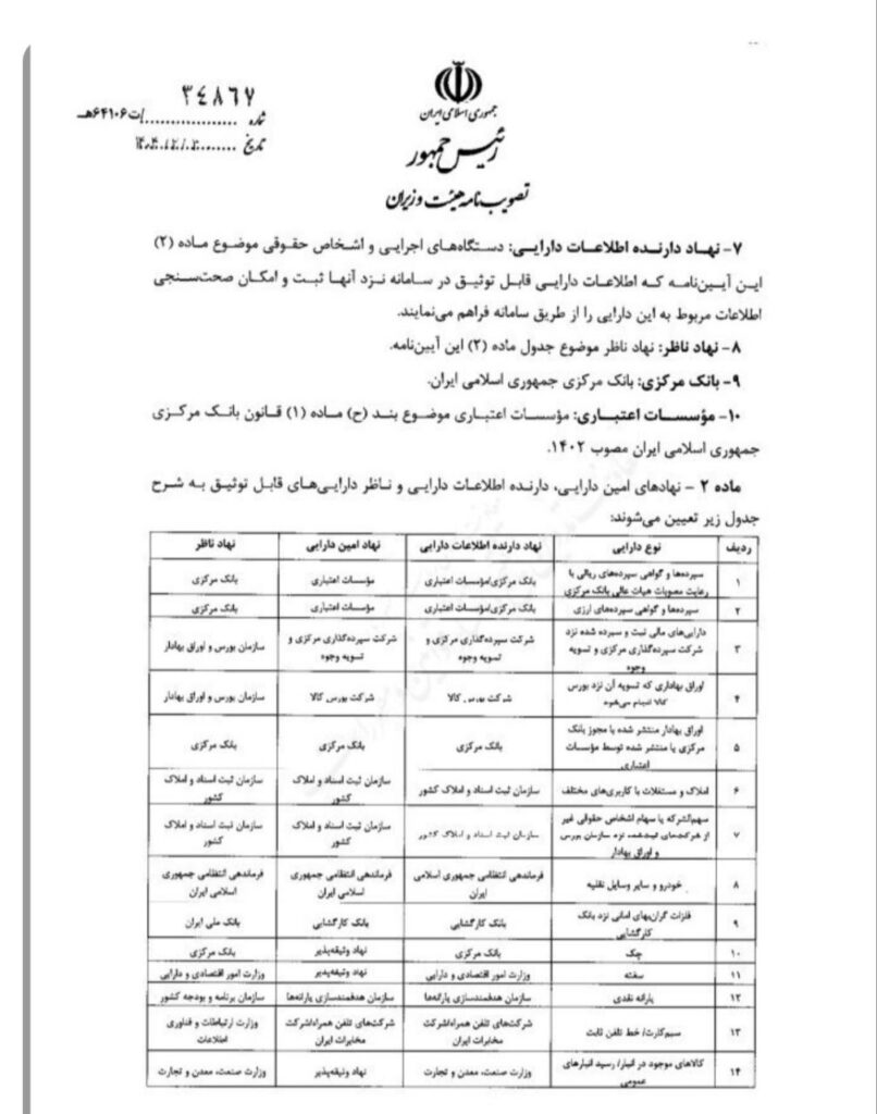 🔹این آییننامه با همکاری نهادهای مختلف از جمله وزارت امور اقتصادی و دارایی، بانک مرکزی، سازمان بورس و سازمان ثبت اسناد تدوین شده است و هدف اصلی آن، تسهیل تأمین مالی بنگاههای تولیدی و پروژههای زیرساختی از طریق استفاده از داراییهای موجود به عنوان وثیقه است.