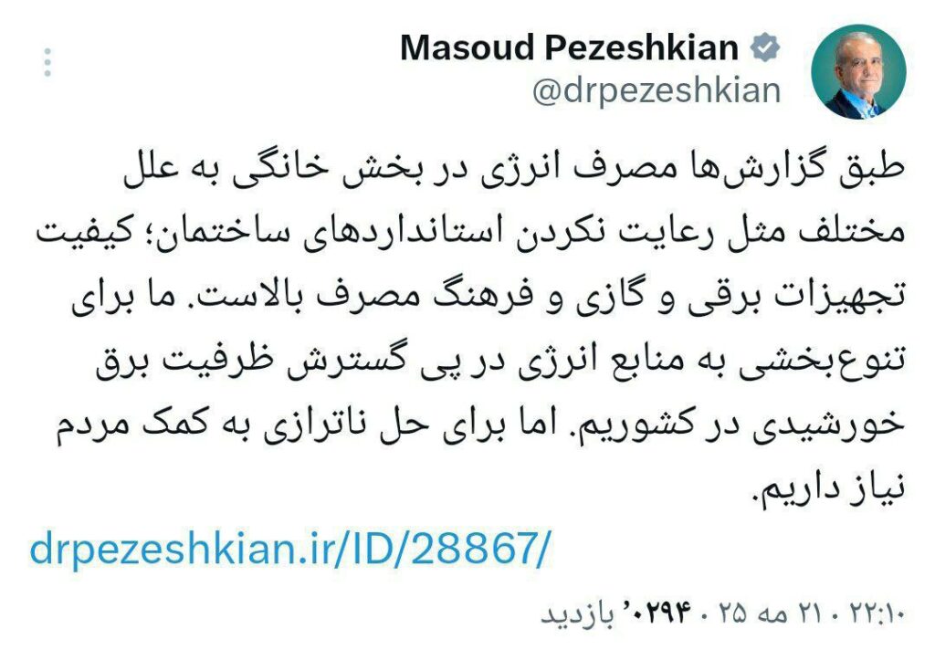 🔻پزشکیان: ظرفیت برق خورشیدی گسترش می‌یابد/ حل ناترازی‌ها نیازمند کمک مردم است
