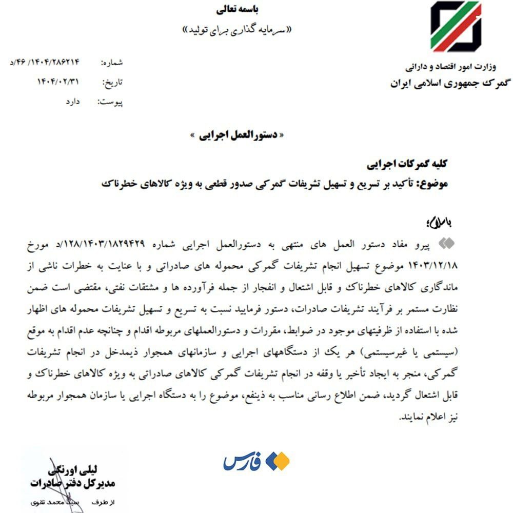 ▪️در پی افزایش نگرانی از ماندگاری محمولههای خطرناک در محوطههای گمرکی، گمرک با صدور دستورالعملی خواستار تسریع در روند تشریفات گمرکی کالاهای خطرناک شد.| فارس
