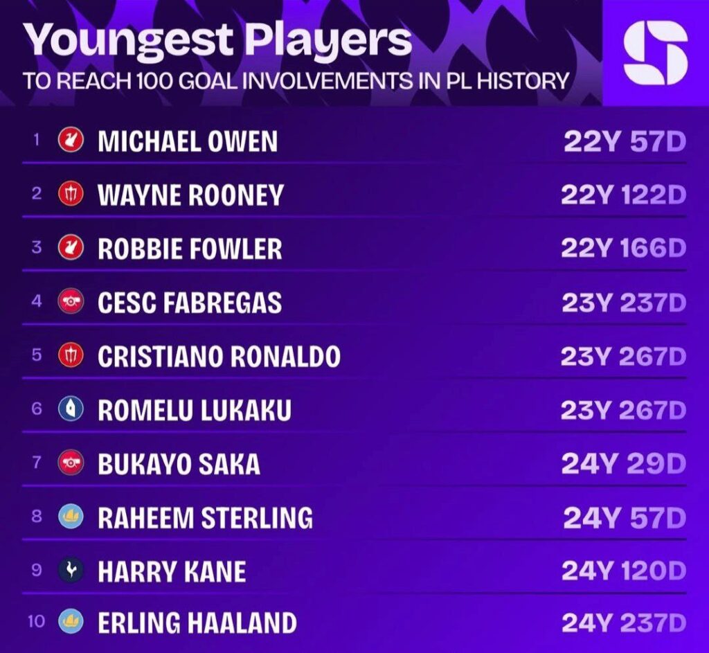 📊جوانترین بازیکنانی که در تاریخ لیگ برتر انگلیس به ۱۰۰ گل و پاس گل دست یافتهاند