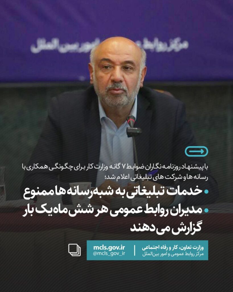 🔹 پس از گردآوری پیشنهادهای نشست مذکور و با موافقت وزیر تعاون،کار و رفاه اجتماعی به منظور برقراری انضباط مالی و رعایت کامل قوانین و مقررات، پیشگیری از انتشار اخبار جعلی و ارتقاء شفافیت در ارتباطات رسانهای، مؤسسات، سازمانها، صندوقها، بانکهای وابسته و شرکت های تابعه مستقیم و غیرمستقیم که در این بخشنامه «سازمانهای وابسته» نامیده میشوند، مکلفند در موضوع همکاری با رسانهها و شرکتهای تبلیغاتی، مطابق با ضوابط هفتگانهای که در ادامه میآید رفتار کنند.