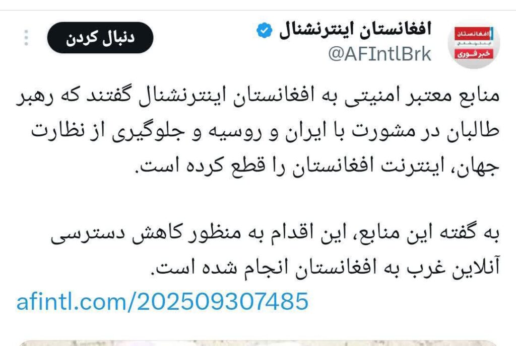 ❌اختلاف افکنی بین مردم ایران و افغانستان با یک خبرسازی دروغ درباره نقش ایران در قطع اینترنت کشور همسایه یکی از همین موارد می باشد!