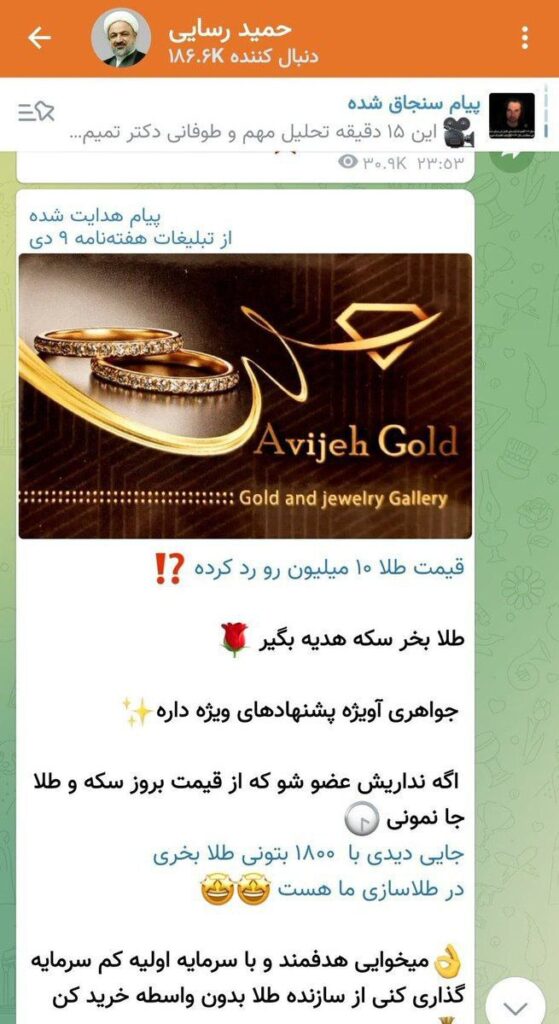 🔸حمید رسایی در کانال ایتای خود تبلیغ کرد: