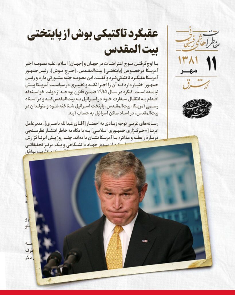 عقبگرد تاکتیکی بوش از پایتختی بیت المقدس