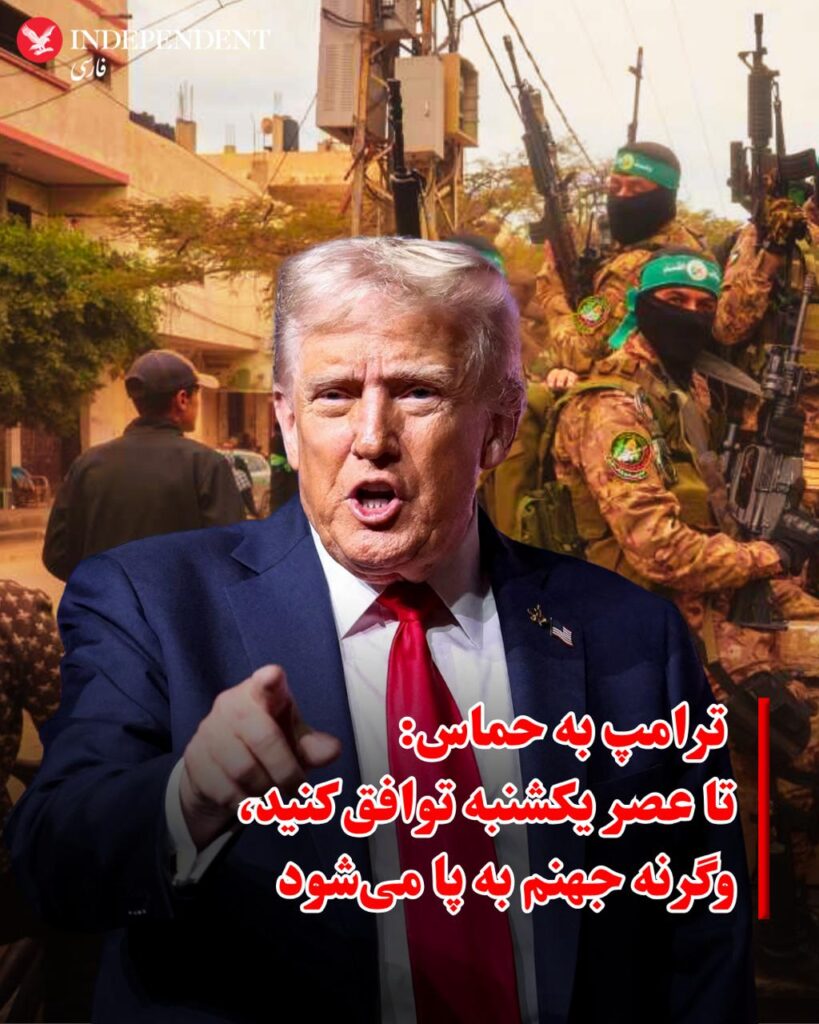 ترامپ در پیامی در شبکه اجتماعی تروثسوشال نوشت: «توافق باید تا عصر یکشنبه ساعت شش به وقت واشنگتن با حماس حاصل شود. همه کشورها آن را امضا کردهاند! اگر این توافق آخرین فرصت تا آن زمان به نتیجه نرسد، جهنمی به پا خواهد شد که هیچکس تاکنون مانند آن را ندیده است.»
