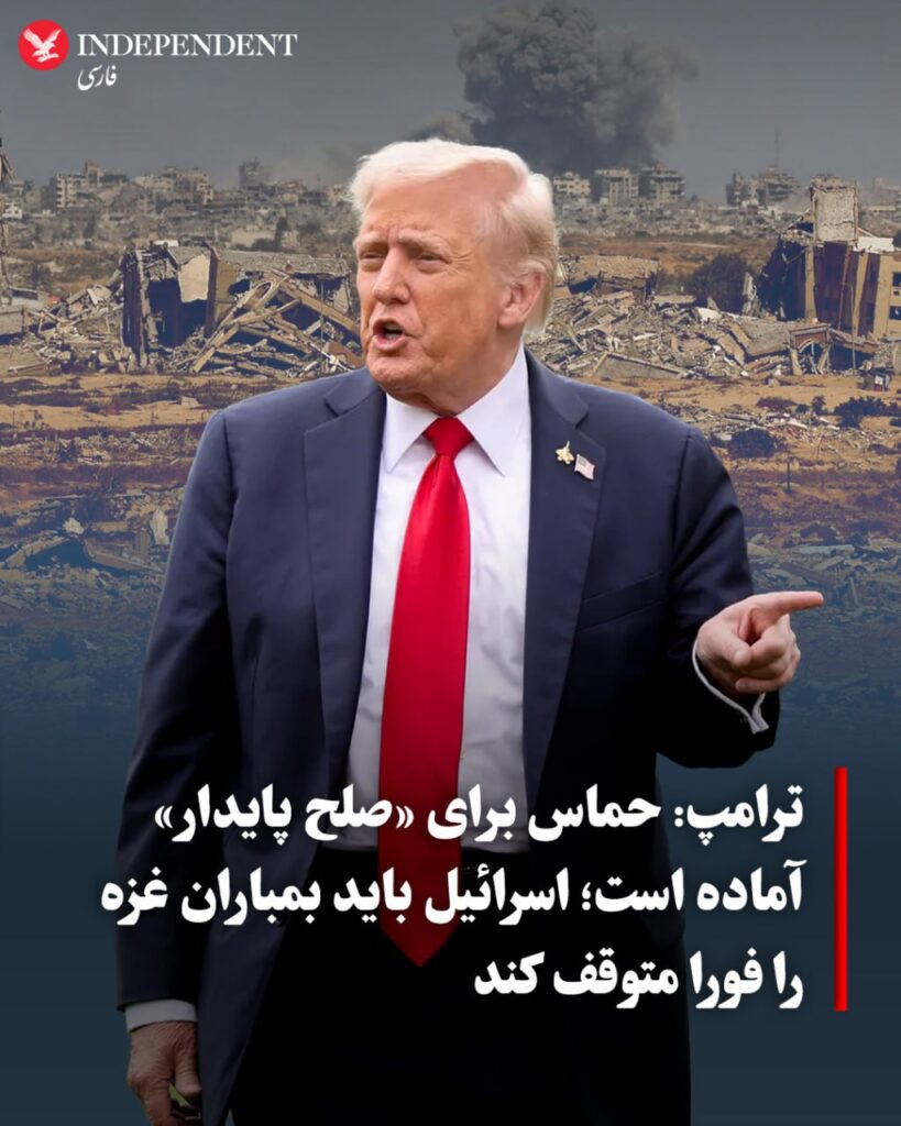 دونالد ترامپ، رئیسجمهوری ایالات متحده، روز جمعه ۱۱ مهر با اشاره به بیانیه اخیر حماس، در شبکه اجتماعی تروثسوشال نوشت: «بر اساس بیانیهای که حماس اکنون صادر کرد، باور دارم که آنها برای صلح پایدار آماده هستند. اسرائیل باید فورا بمباران غزه را متوقف کند تا بتوانیم گروگانها را به سرعت و در امنیت از آنجا خارج کنیم؛ در حال حاضر برای این کار خیلی خطرناک است. ما مذاکرات بر سر جزئیات را آغاز کردهایم. این تنها به غزه مربوط نیست، این مربوط به صلحی است که مدتها در خاورمیانه در جستجوی آن بودهایم.»