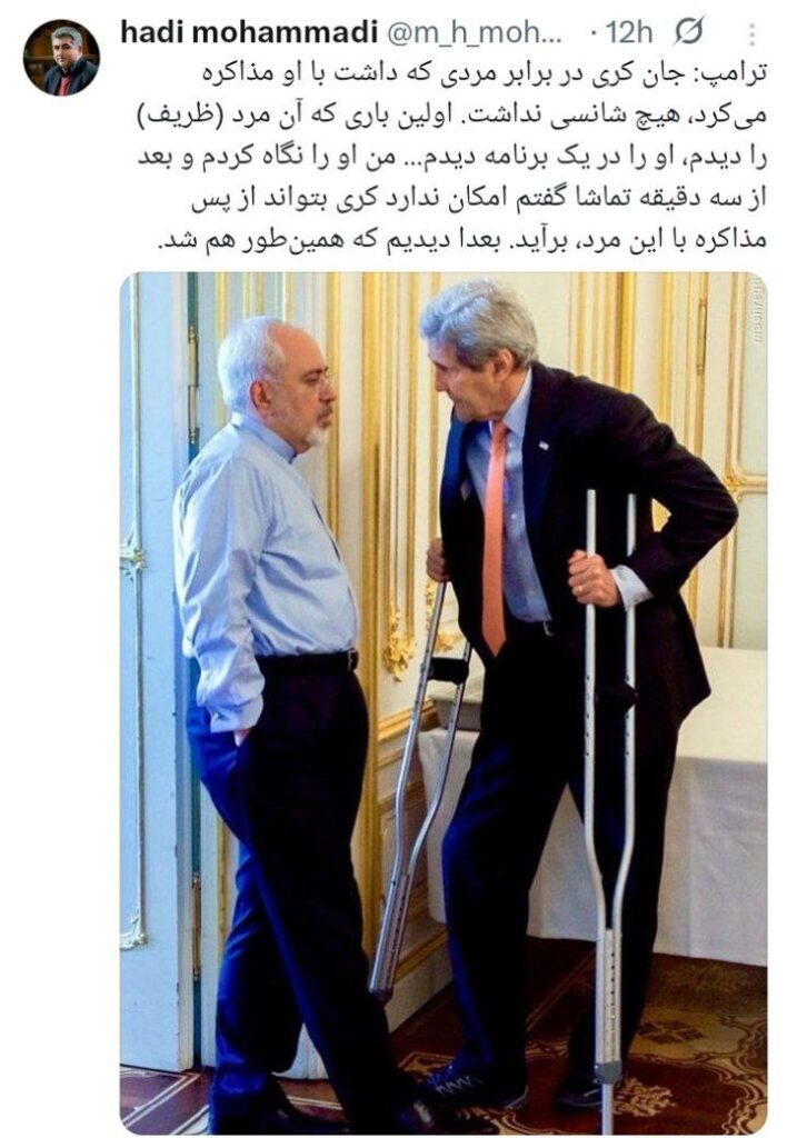 🔸 جان کری در برابر مردی که داشت با او مذاکره میکرد، هیچ شانسی نداشت. اولین باری که آن مرد (ظریف) را دیدم، او را در یک برنامه دیدم… من او را نگاه کردم و بعد از سه دقیقه تماشا گفتم امکان ندارد کری بتواند از پس مذاکره با این مرد، برآید. بعدا دیدیم که همینطور هم شد.