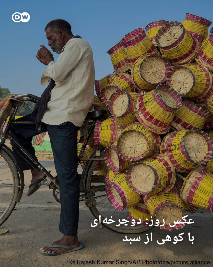 شهر پریاگراج در شمال هند در محل تلاقی دو رودخانه گنگ و جمنا قرار دارد. کشاورزی و صنایع دستی در این شهر نقش مهمی بازی میکنند. حصیربافی بویژه سبدهای حصیری بخش مهمی از این صنایع بهشمار میرود و پخش و فروش آنها نیز اغلب، کار دستفروشان است؛ از جمله این مرد که کوهی از سبدها را روی دوچرخهاش چیده و پیش از آغاز کار، در حال روشن کردن سیگار است.