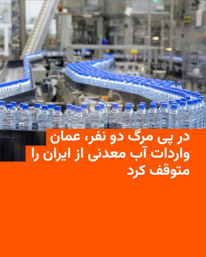 🔸به گفته پلیس سلطنتی عمان، یک زن خارجی روز دوشنبه و یک مرد عمانی روز چهارشنبه پس از مصرف آب معدنی وارداتی از ایران در بیمارستان جان باختند. چند عضو دیگر یک خانواده نیز دچار مسمومیت شدند اما پس از درمان بهبود یافتهاند.