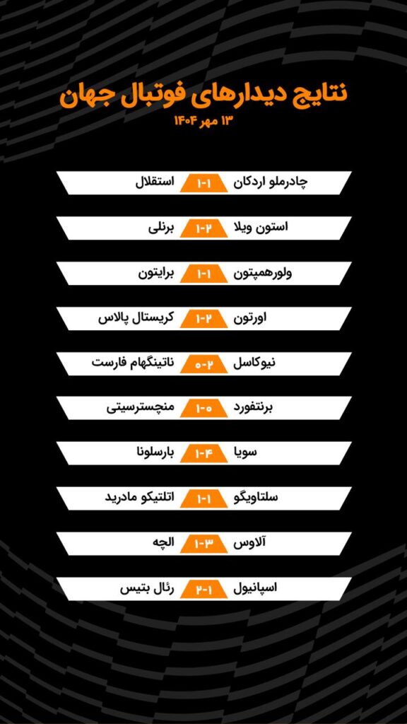⚽️نتایج دیدارهای امشب فوتبال جهان، ۱۳ مهر ۱۴۰۴