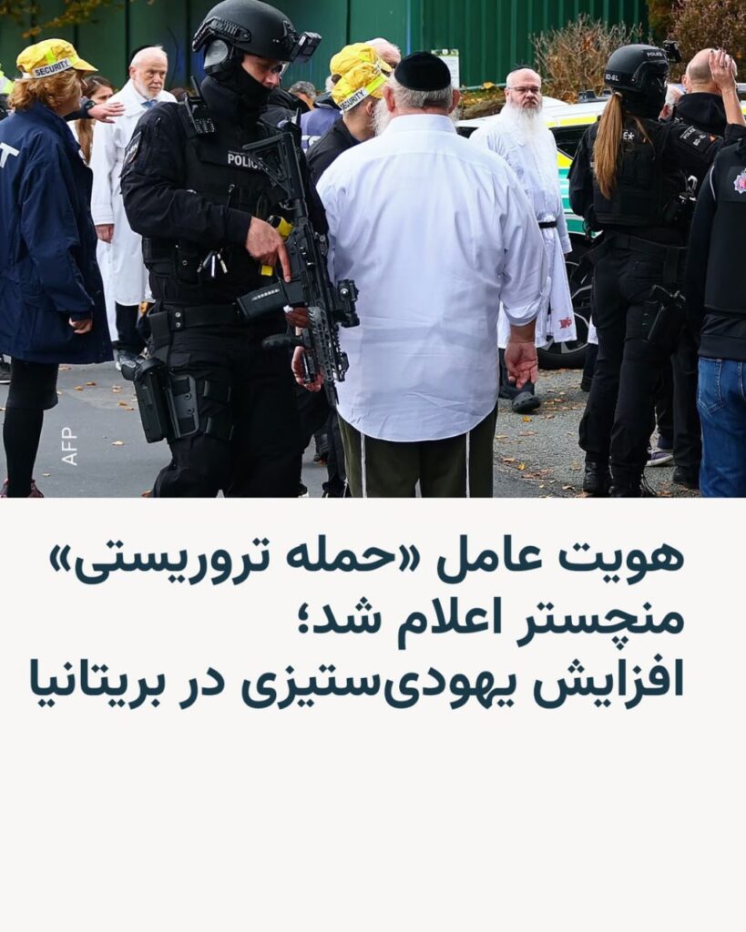 🔸در حمله‌ای که روز پنجشنبه ۱۰ مهر در بیرون از کنیسه‌ای در منچستر رخ داد، دو نفر جان باختند و فرد سوم که مظنون به ارتکاب این حمله بود، نیز بر اثر تیراندازی پلیس کشته شد.