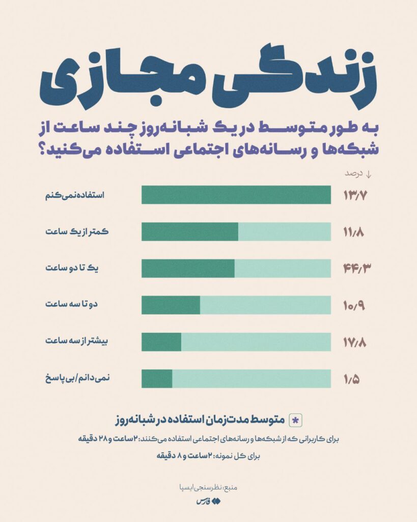 چهارده درصد ایرانی‌ها از شبکه‌های اجتماعی استفاده نمی‌کنند.