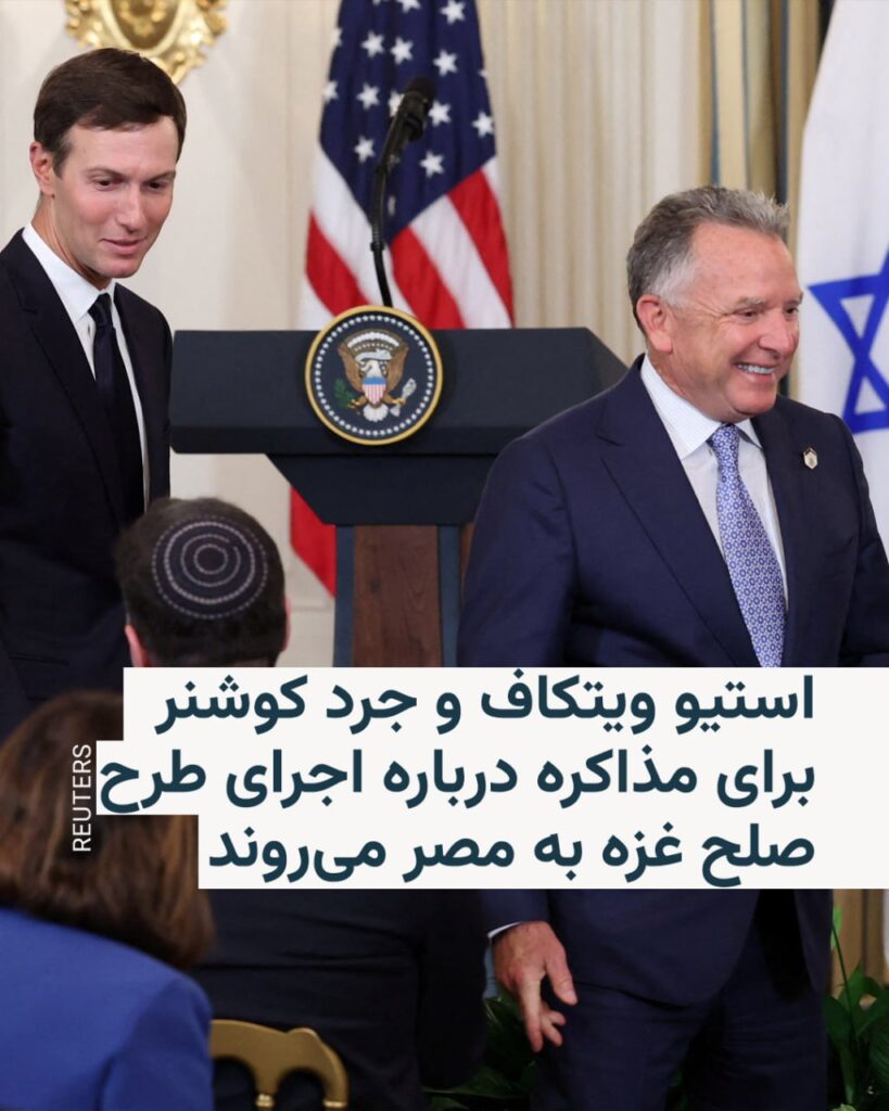 🔸سفر این دو فرد نزدیک به آقای ترامپ، پس از پاسخ مثبت گروه افراطی حماس به طرح صلح رئیس جمهور آمریکا صورت میگیرد.