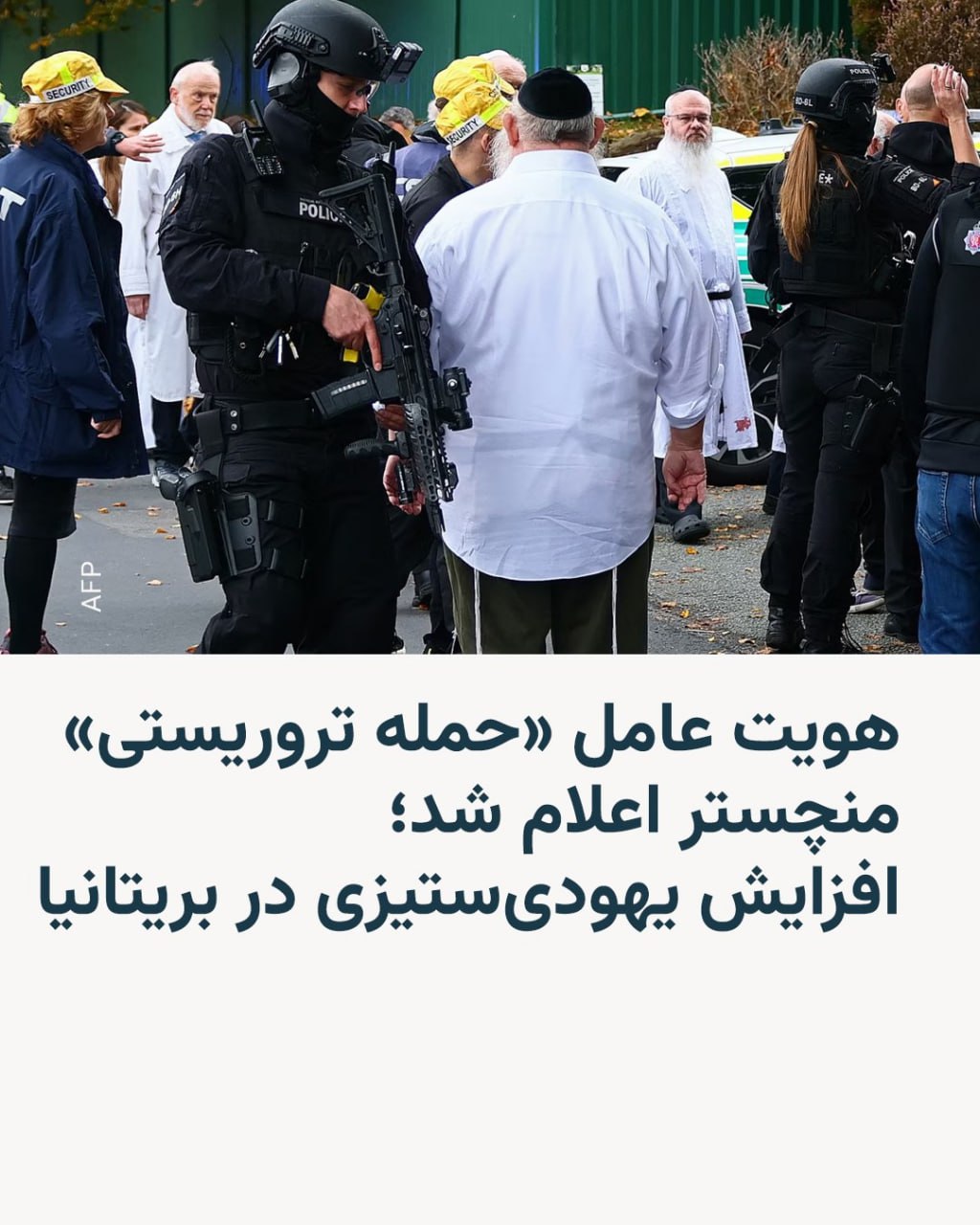 🔸دولت بریتانیا هم اعلام کرد تلاشهای خود را برای مقابله با یهودیستیزی را افزایش خواهد داد. 🔸در حملهای که روز پنجشنبه ۱۰ مهر در بیرون از کنیسهای در منچستر رخ داد، دو نفر جان باختند و فرد سوم که مظنون به ارتکاب این حمله بود، نیز بر اثر تیراندازی