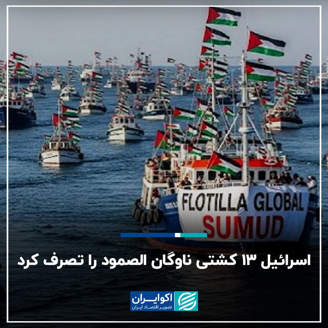 ▫️سخنگوی «ناوگان جهانی الصمود» خبر داد تاکنون ۱۳ فروند از کشتیهای این ناوگان توسط نیروی دریایی اسرائیل تصرف شده است. ▫️به گزارش اکوایران، سخنگوی ناوگان الصمود ساعاتی پیش نیز تأکید کرد که فعالان این کاروان انسانی هیچ سند یا تعهدی را که از سوی اسرائیل ارائه شود امضا نخواهند