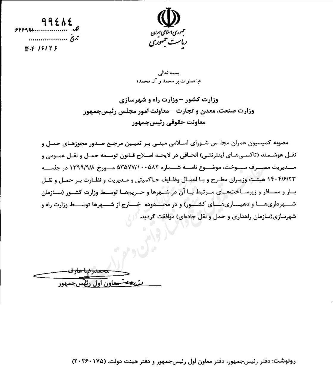 📍صدور مجوز تاکسیهای اینترنتی به شهرداری و وزارت راه سپرده شد 🔹با وجود مخالفتهای گسترده از سوی تاکسیهای اینترنتی، اتحادیه کسبوکارهای مجازی و انجمن تجارت الکترونیک تهران، دولت در تصمیمی تازه، مسئول صدور مجوز و نظارت بر تاکسیهای اینترنتی را به وزارت راه و شهرسازی سپرد. 🔹بر اساس نامهای