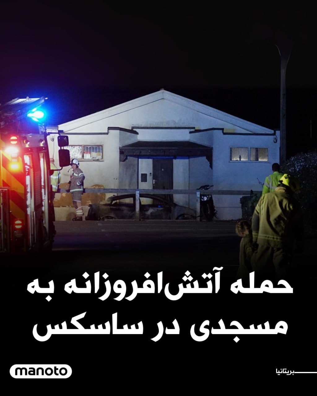 پلیس میگوید دو نفر مایع قابل اشتعال روی درِ مسجد و خودرویی در بیرون ریختند و آن را آتش زدند. کسی آسیب ندیده اما ورودی مسجد سوخته است. ویدیوهایی در شبکههای اجتماعی دو فرد نقابدار را نشان میدهد که پیش از شعلهور شدن آتش به سمت مسجد میروند. پس