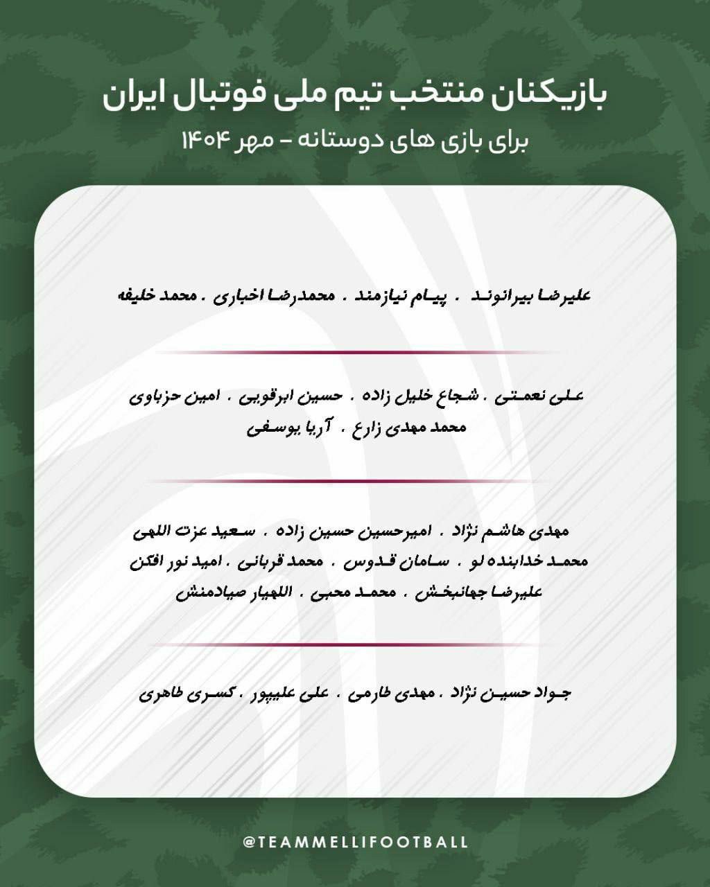 🔹فردا شب و پس از بازی استقلال و چادرملو، فهرست تیم ملی برای دو دیدار دوستانه برابر روسیه و تانزانیا تکمیل خواهد شد 👈سید مجید حسینی، محمدحسین کنعانیزادگان، علی قلی زاده، مهدی قائدی و سردار آزمون بهدلیل مصدومیت، قادر به همراهی تیم ملی نیستند 🇮🇷 @jamarannews